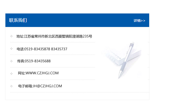 地址:常州市新北區(qū)友邦商務大廈1幢16、17層  電話:0519-85101652  傳真:0519-85112595  郵編:213022  網(wǎng)址:www_cz-jiayue_cn.ilinoiart.com  郵箱:xiajifengaa@163.com